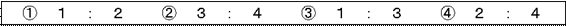 例 A試合目の3:4の場合 左側=3のゲーム数 右側=4のゲーム数 |