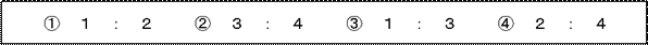 例 A試合目の3:4の場合 左側=3のゲーム数 右側=4のゲーム数
