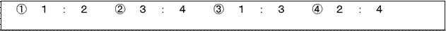 レイ A試合シアイの3:4の場合バアイ 左側ヒダリガワ=3のゲーム数 右側ミギガワ=4のゲームスウ