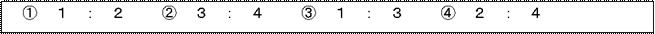 | ・スコアボードについては以下のとおり表示する 試合番号 特になし 対戦スコア 左側数字 ドロー番号の数字が小さいチームの勝ちゲーム数 右側数字 ドロー番号の数字が大きいチームの勝ちゲーム数 例 A試合目の3:4の場合 左側=3のゲーム数 右側=4のゲーム数 |