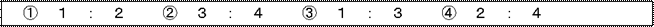 | ・スコアボードについては以下のとおり表示する 試合番号 特になし 対戦スコア 左側数字 ドロー番号の数字が小さいチームの勝ちゲーム数 右側数字 ドロー番号の数字が大きいチームの勝ちゲーム数 例 A試合目の3:4の場合 左側=3のゲーム数 右側=4のゲーム数 |