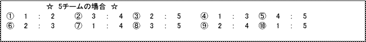 | ブロック | コート | 女子 | 5人用 | 総当り | |||||||||